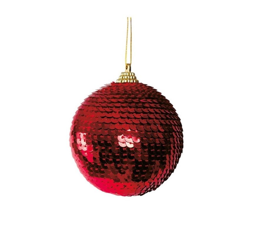 Adorno de Navidad en forma de bola, de lentejuela en rojo.