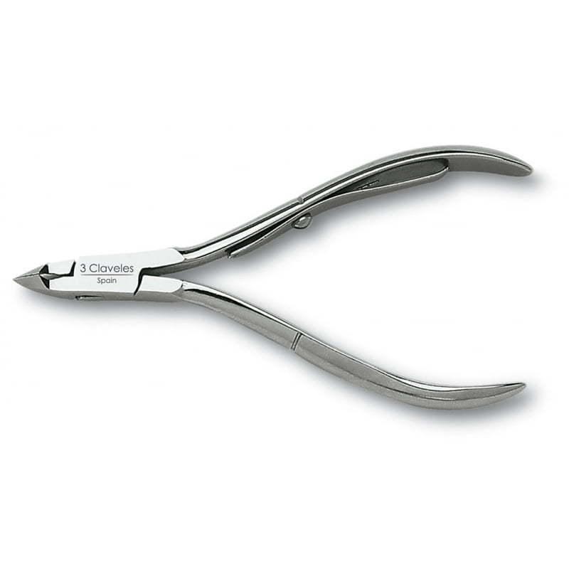 Alicate de cutícula de la marca 3 Claveles, forjado en caliente, con boca de corte recta y muelle, para cortar sin desgarrar las pieles de las uñas que producen irritaciones.