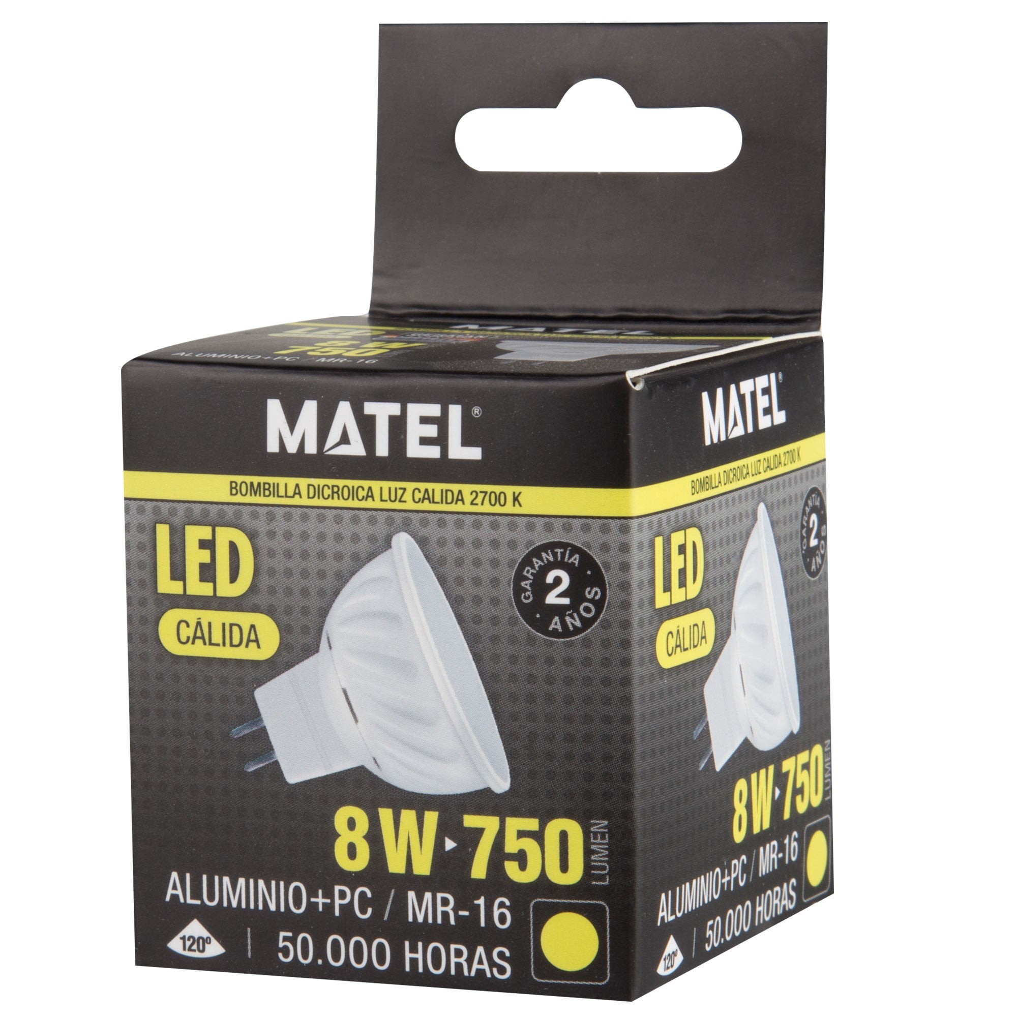 Bombilla LED dicroica MR-16 8W Luz cálida