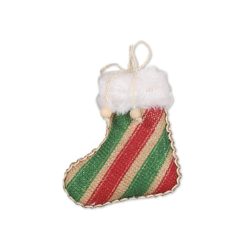 Bota adorno de Navidad, tela de saco, rojo y verde. 12cm
