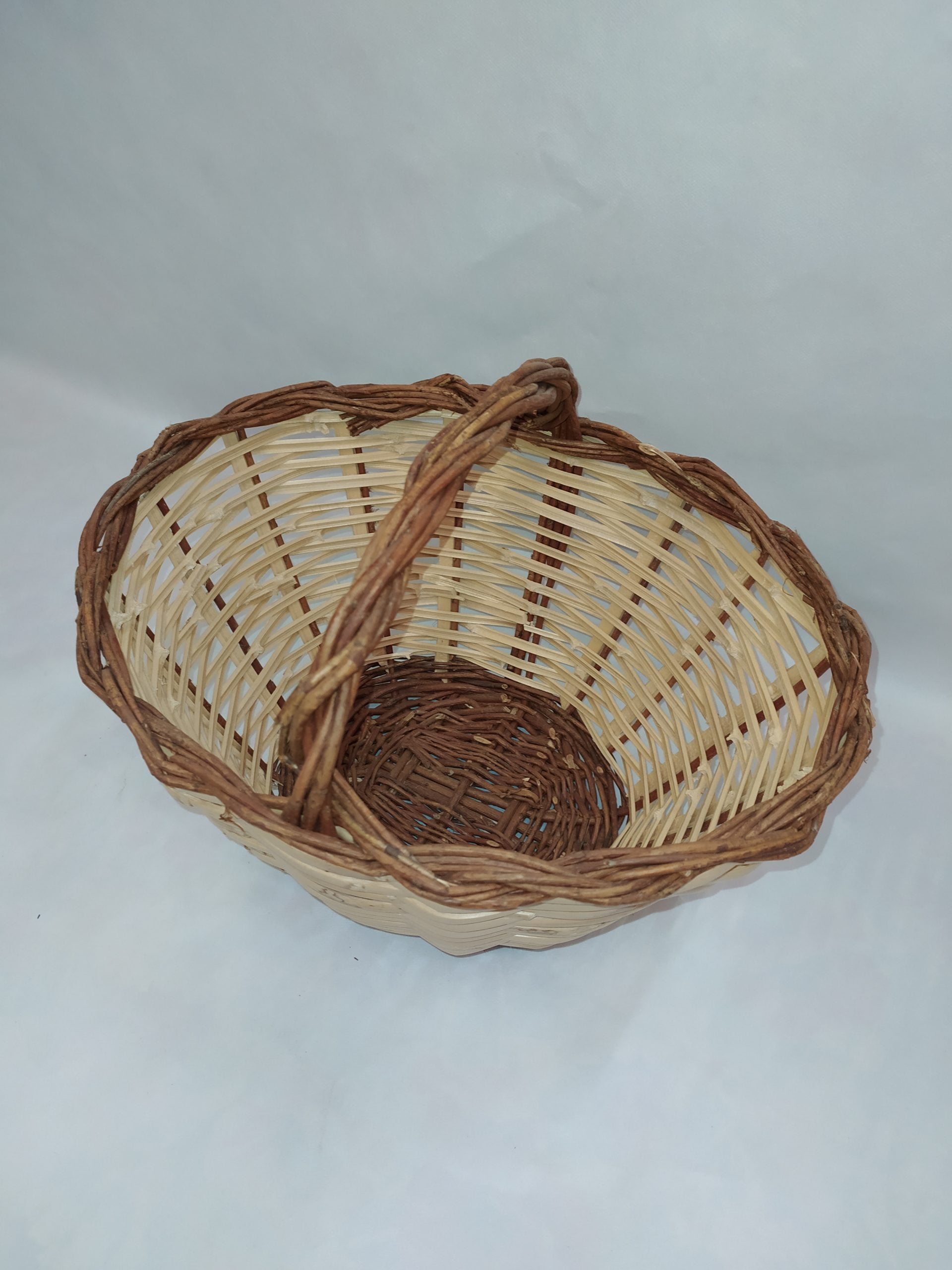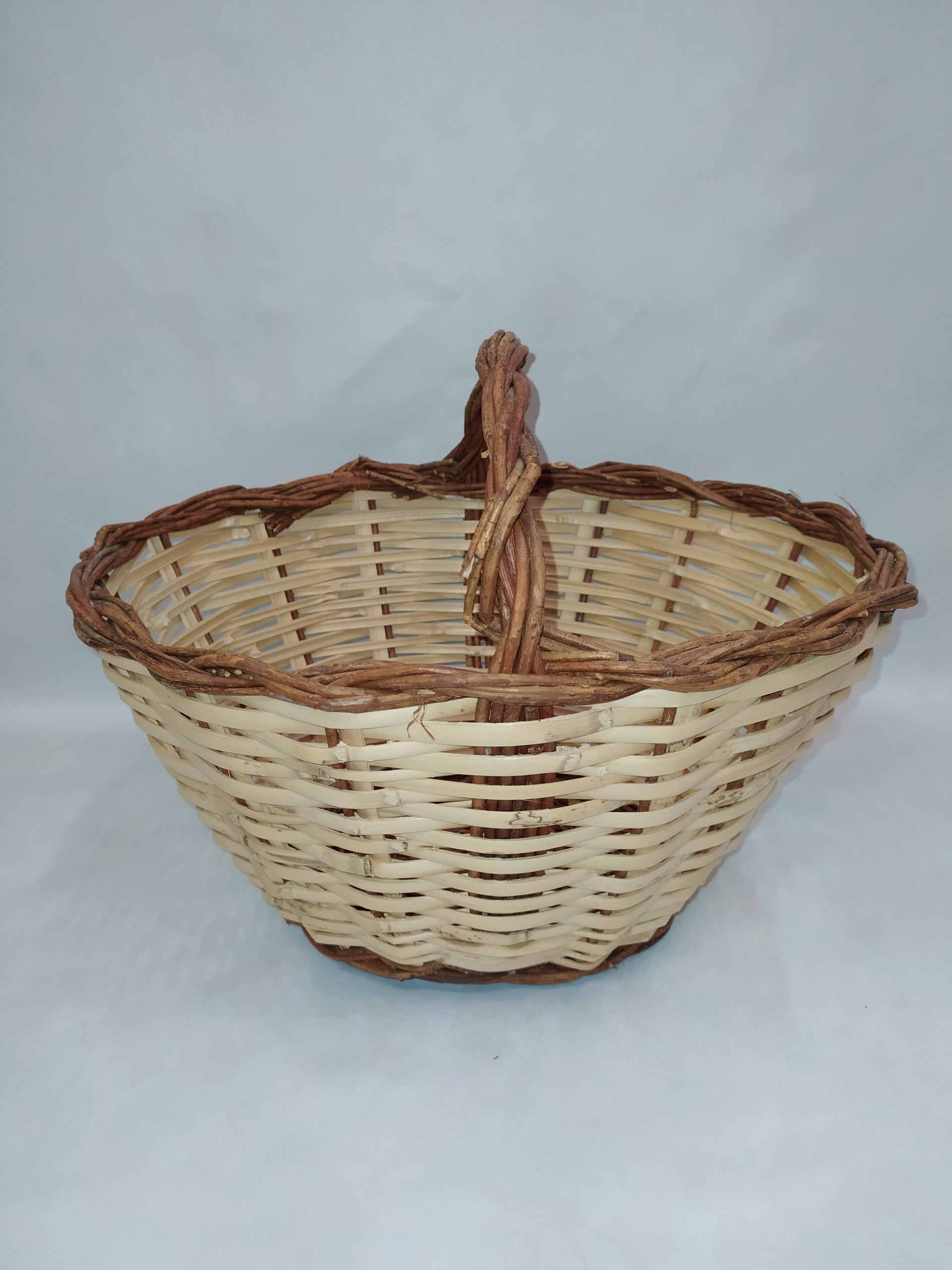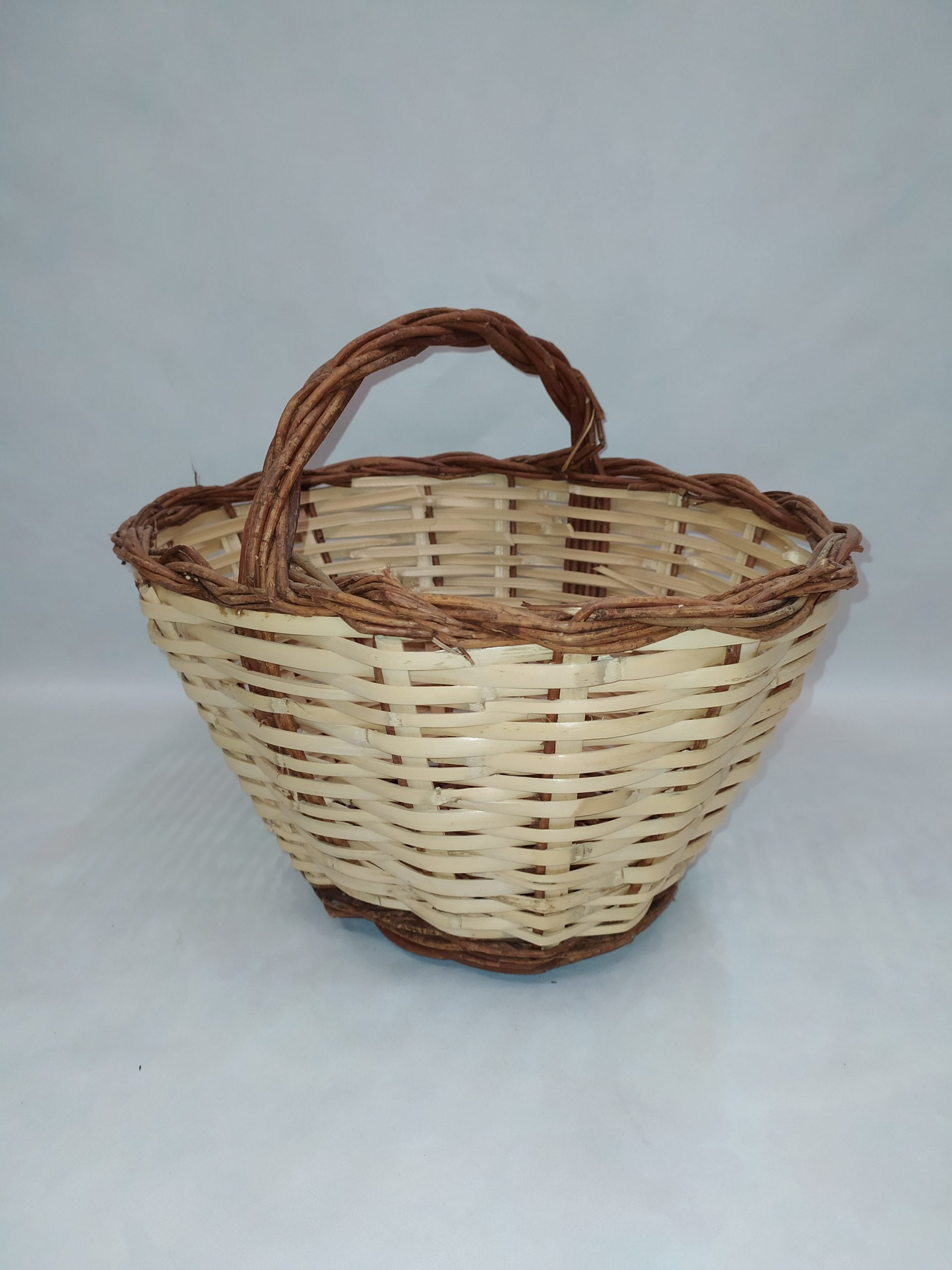 Cesta de mimbre de dos colores y con asa. Mediana.