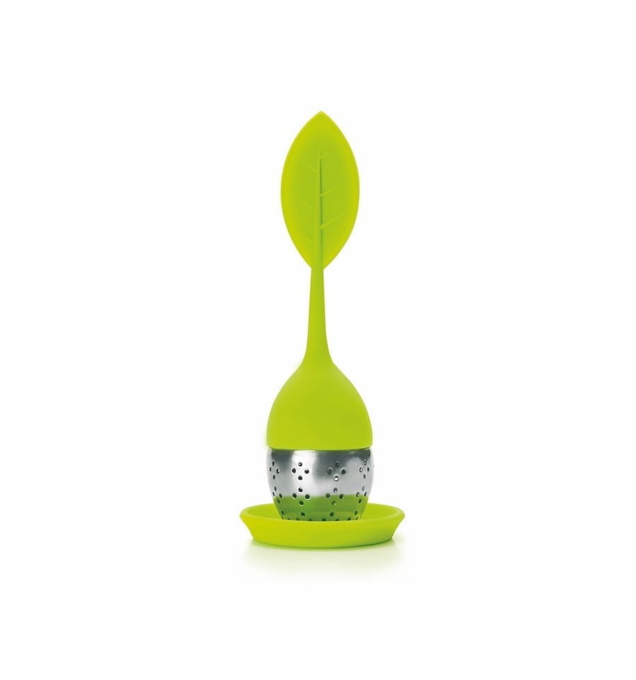 Infusor para té con forma de hoja, en color verde.