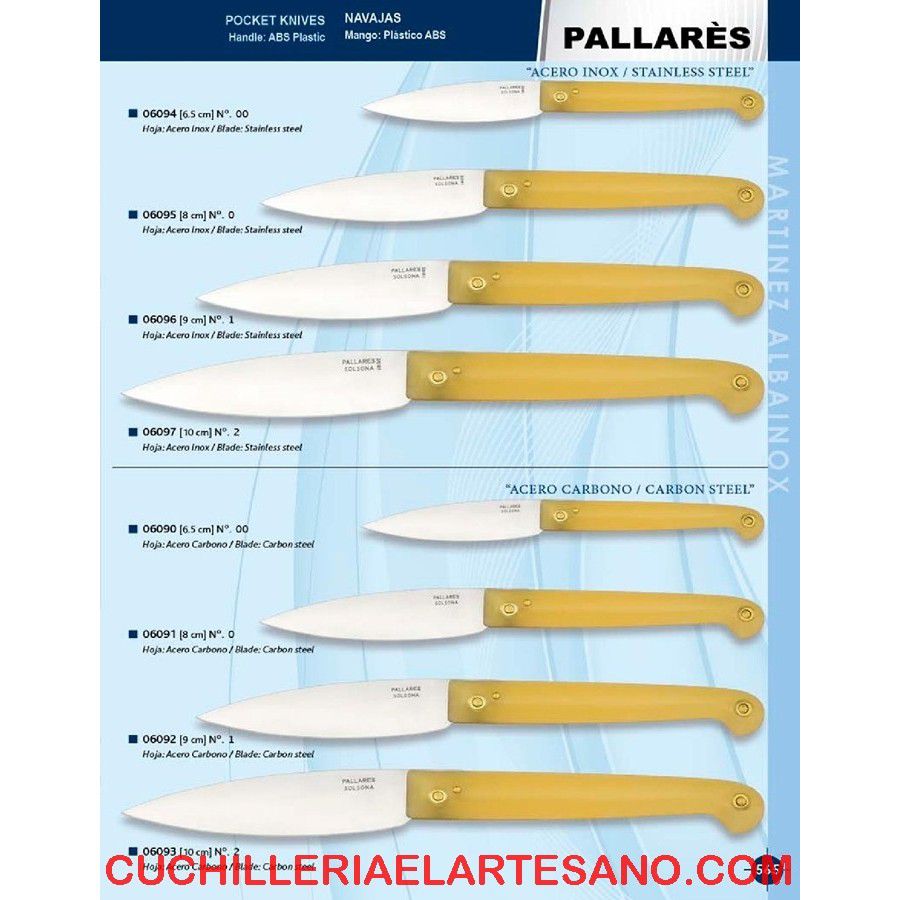 Navaja Pallarés, fabricada en Solsona (Lleida), modelo Común, con hoja de acero carbono o acero inoxidable, muy bien afilada y duradera.