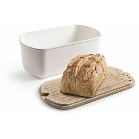 Podrás guardar tu pan de manera original y ordenada. Esta panera cuenta con una tapa, que a su vez, es una tabla de cocina fabricada en bamboo para cortar el pan.