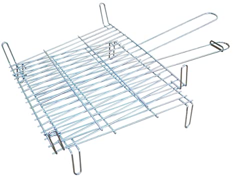 Parrilla tradicional doble galvanizada, para BBQ, con un solo agarre que facilita poder dar la vuelta a los alimentos rápidamente.