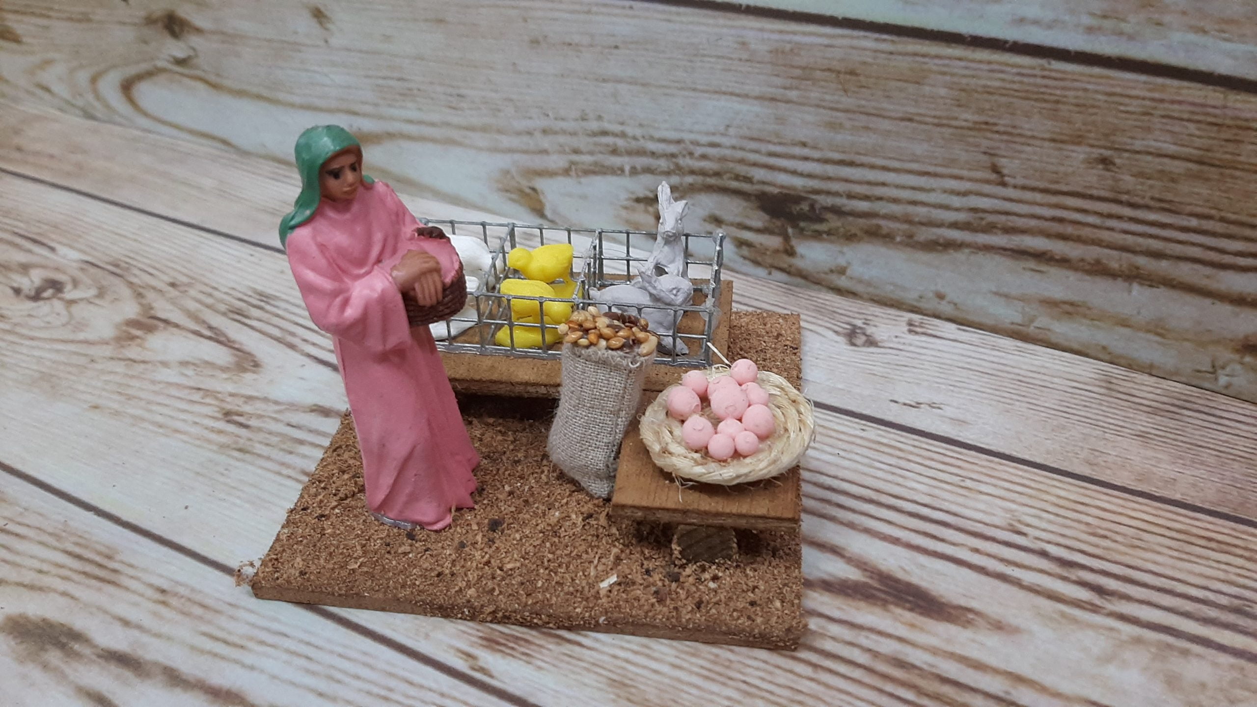Puesto de vender animales de granja, aves, huevos, etc. para pesebre.
