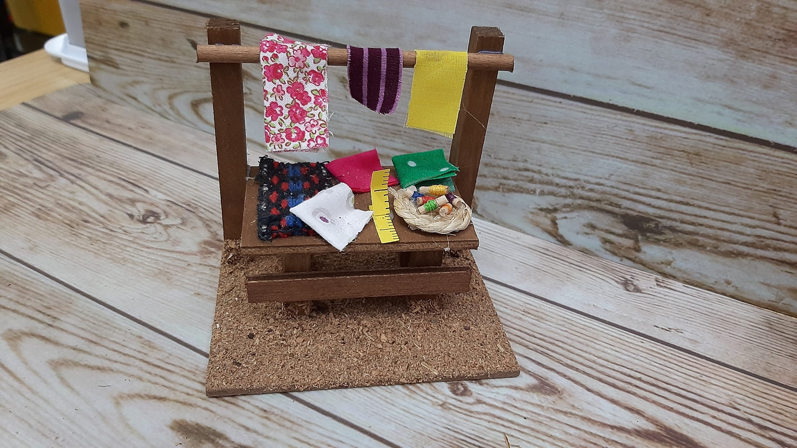 Pesebre – parada puesto de vender telas y hilos. 12cm