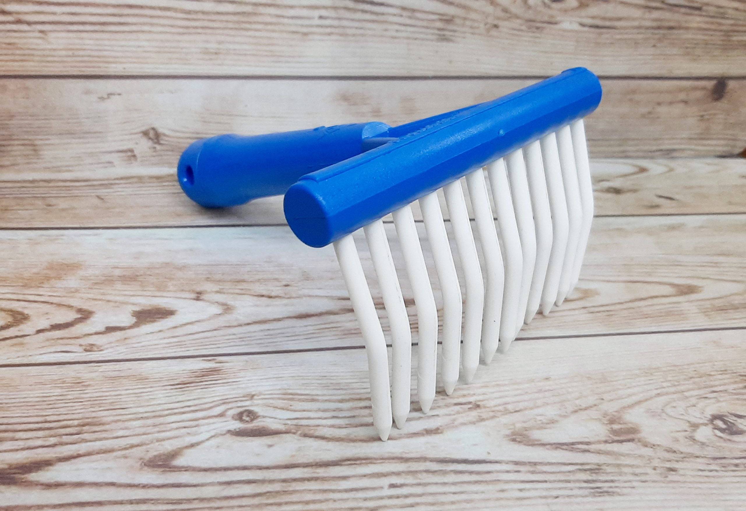 Rastrillo grapa para recoger aceitunas Nylon azul y blanco