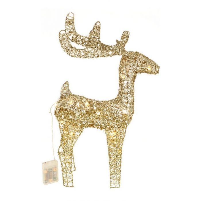 Reno Oro metálico Navidad de 46cm con 30 leds a pilas