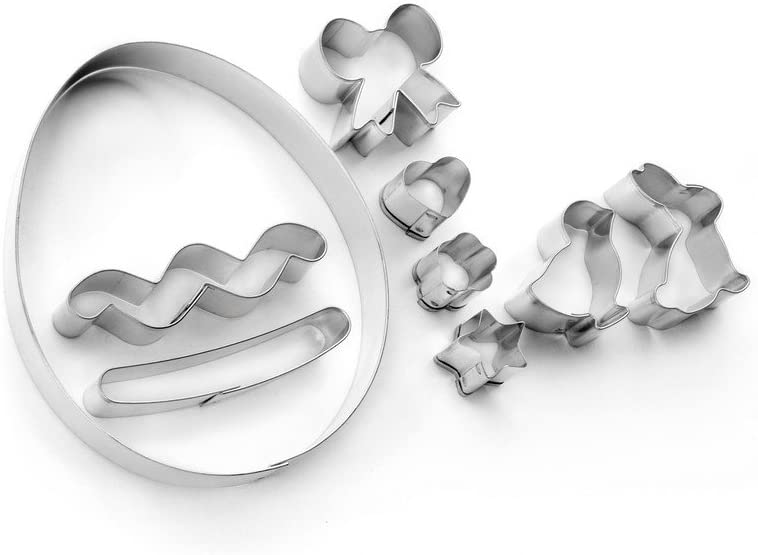 Set de 9 piezas de cortapastas con motivos de huevo de Pascua.