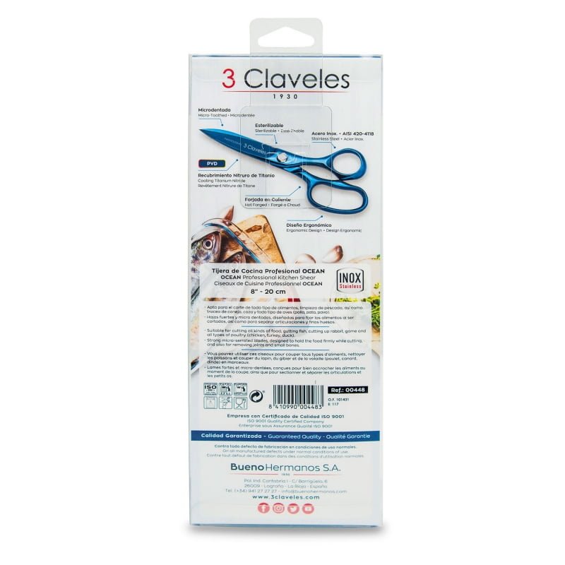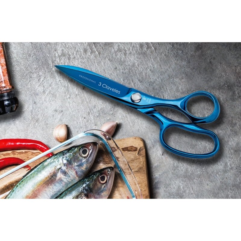 Tijera de cocina Ocean en color azul, de 8" y 20cm. Con la garantía de 3 Claveles