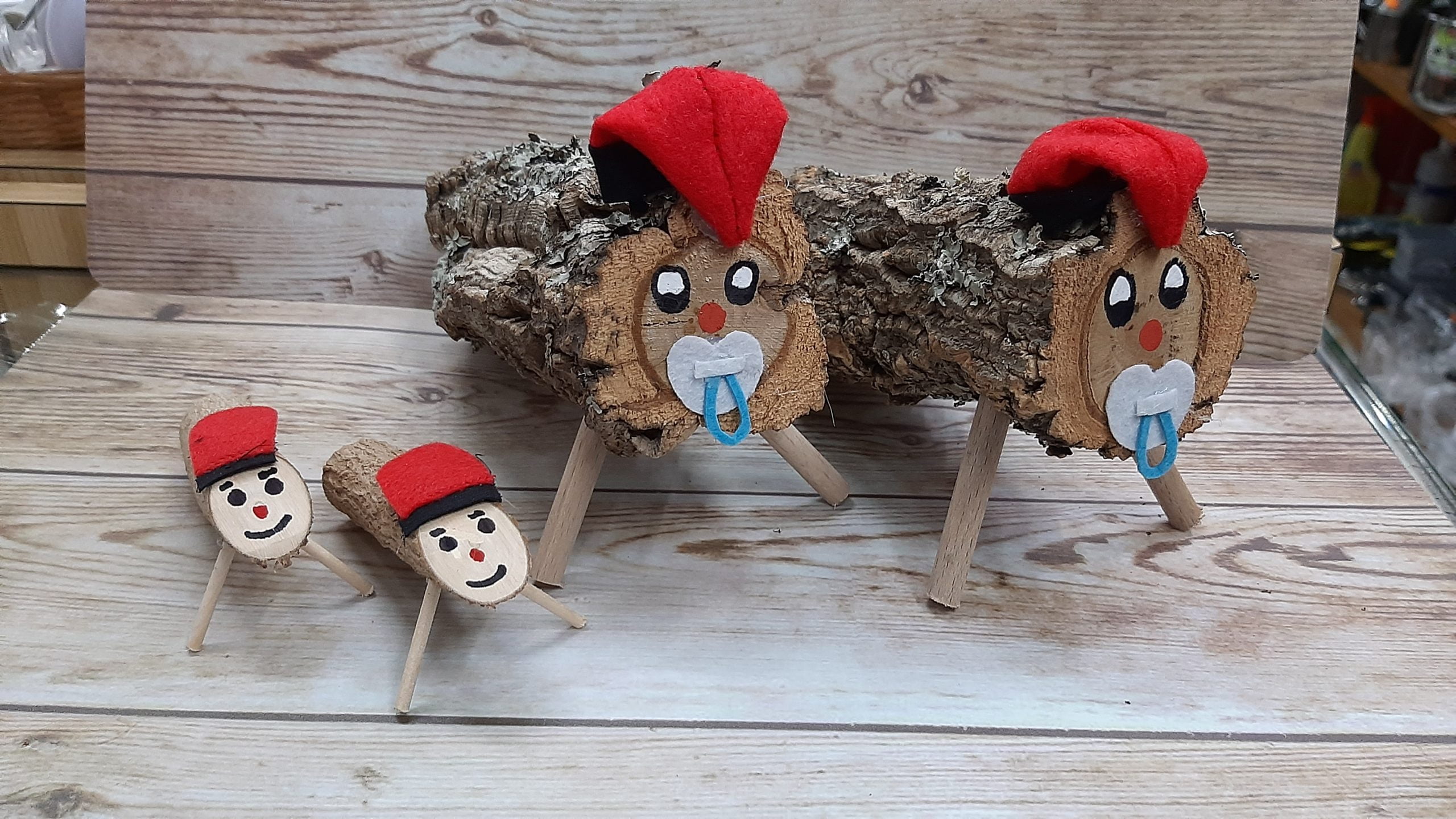 Tió Tronco Soca de Navidad. Caga tió madera y corcho con cara pintada. Diferentes tamaños.