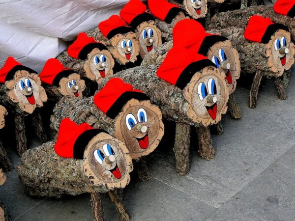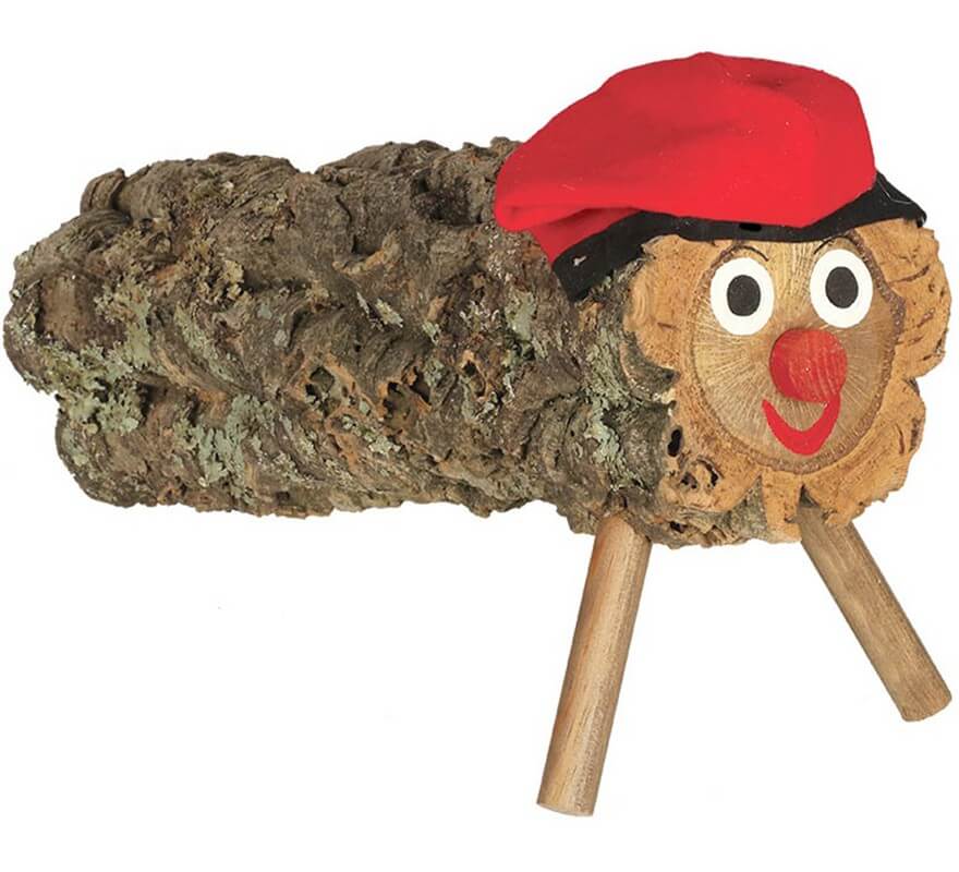 Caga tió o tronco de Navidad (soca de Nadal), en madera y recubierto en corcho natural.