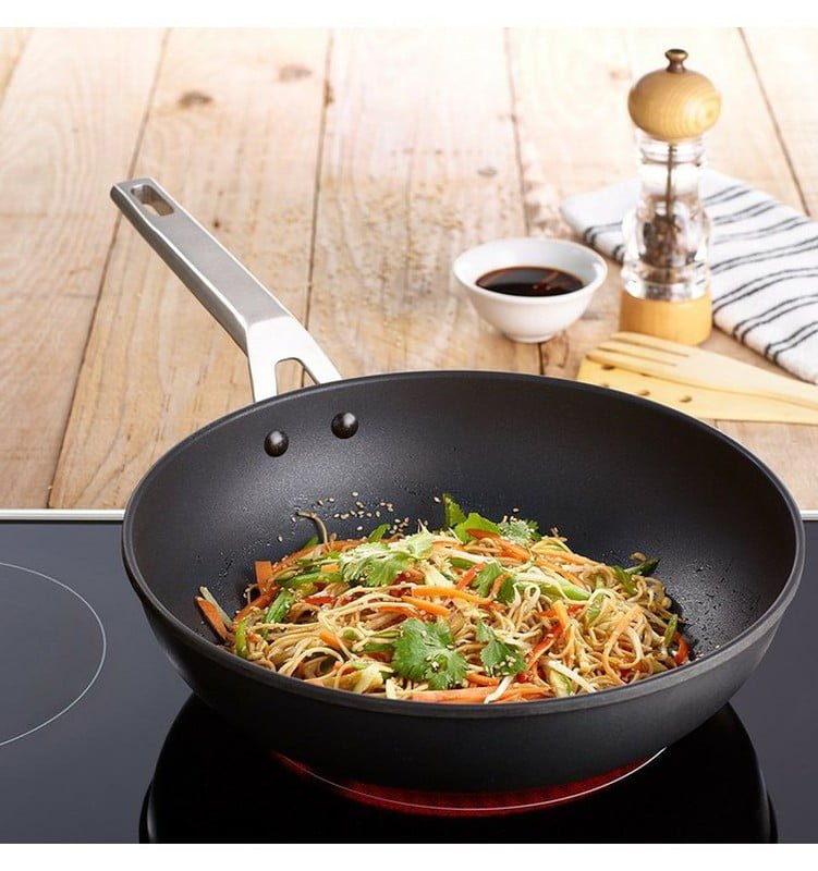 Wok AIRE de 30 cm. de aluminio fundido indeformable, con antiadherente ecológico reforzado multicapa con TITANIO y sin